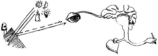 Wie kommen die farbigen erscheinungen zustande? Dabei orientieren wir uns an folgender vorstellung: Licht wird von einem körper in unser auge reflektiert, dort in einen reiz verwandelt, der in unserm hirn wahrgenommen wird. |