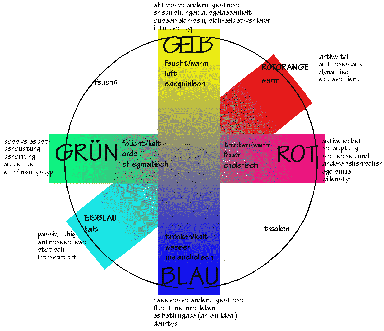 Interpretation nach dem muster der griechischen auffassung der vier elemente Ausserhalb des kreises: Psychologische beschreibung aus heutiger sicht |
