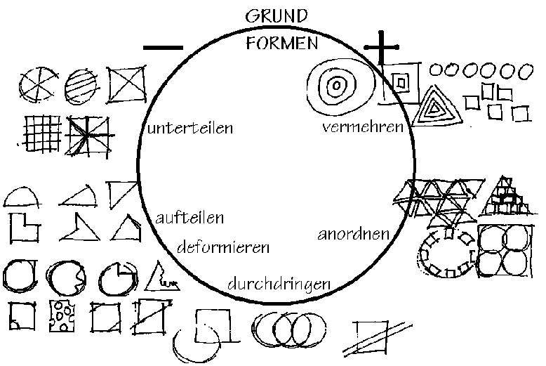 Durch verfremdung lassen sich dennoch neuartige lösungen anstreben. Vorurteilslos werden elemente systematisch nach festen spielregeln variert, verändert: Sie unterziehen sich neuen ordnungen, die durch das verb ausgedrückt werden: verfremden, verpacken, verdünnen, verdicken, zerhacken, desorientieren, kombinieren........ |