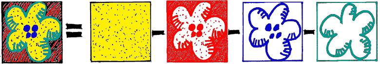 Da auch bei deckenden farben die hellen töne (ohne beimischung von deckweiss) die dunkeln nicht decken, druckt man von hell nach dunkel (und es ergeben sich mischtöne) oder man trennt die farbauzüge ganz exakt. |